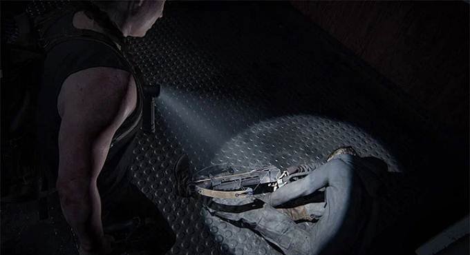 L’arbalète se trouve à côté des restes humains trouvés sur le navire. Abby ramassera automatiquement l’arme, il est donc impossible de sauter l’événement.